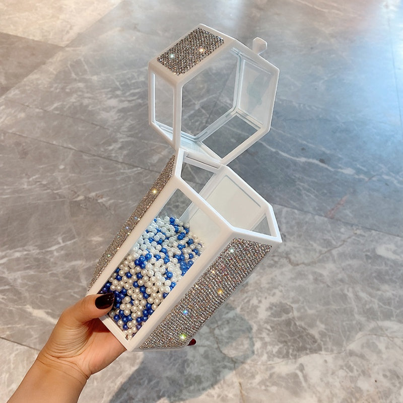 Glass Storage Box Dustproof With Lid Diamond Eyebrow Pencil Eyeliner Pearl Brush Bucket