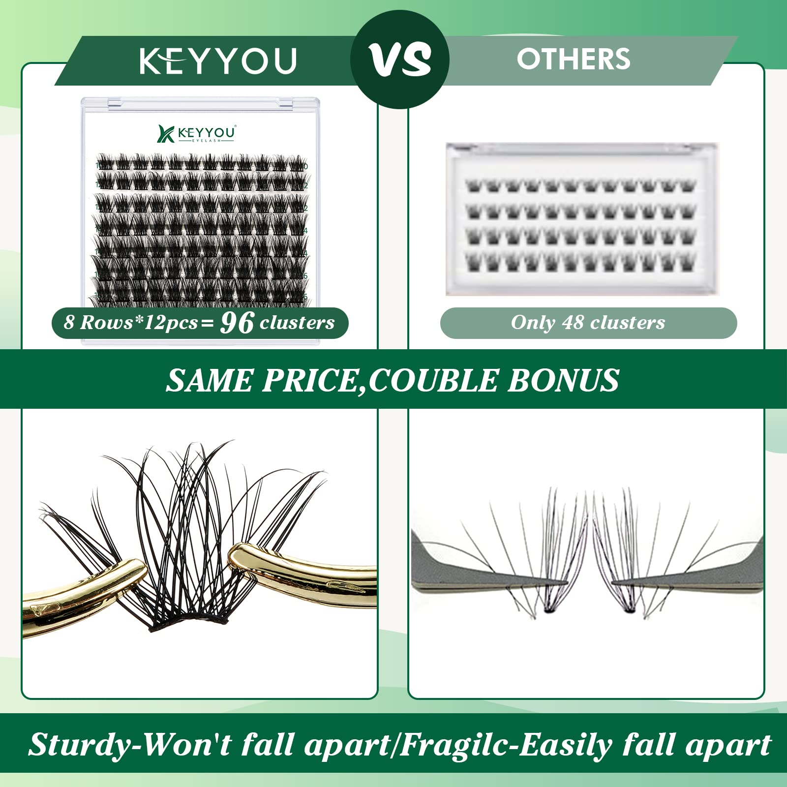 Lash Clusters 96pcs Individual Lashes Y08 D Curl 10mm Cluster Lashes KEYYOU Volume Wispy Lash Extension Soft&Comfortable Easy DIY at Home(Y08 D-10mm)