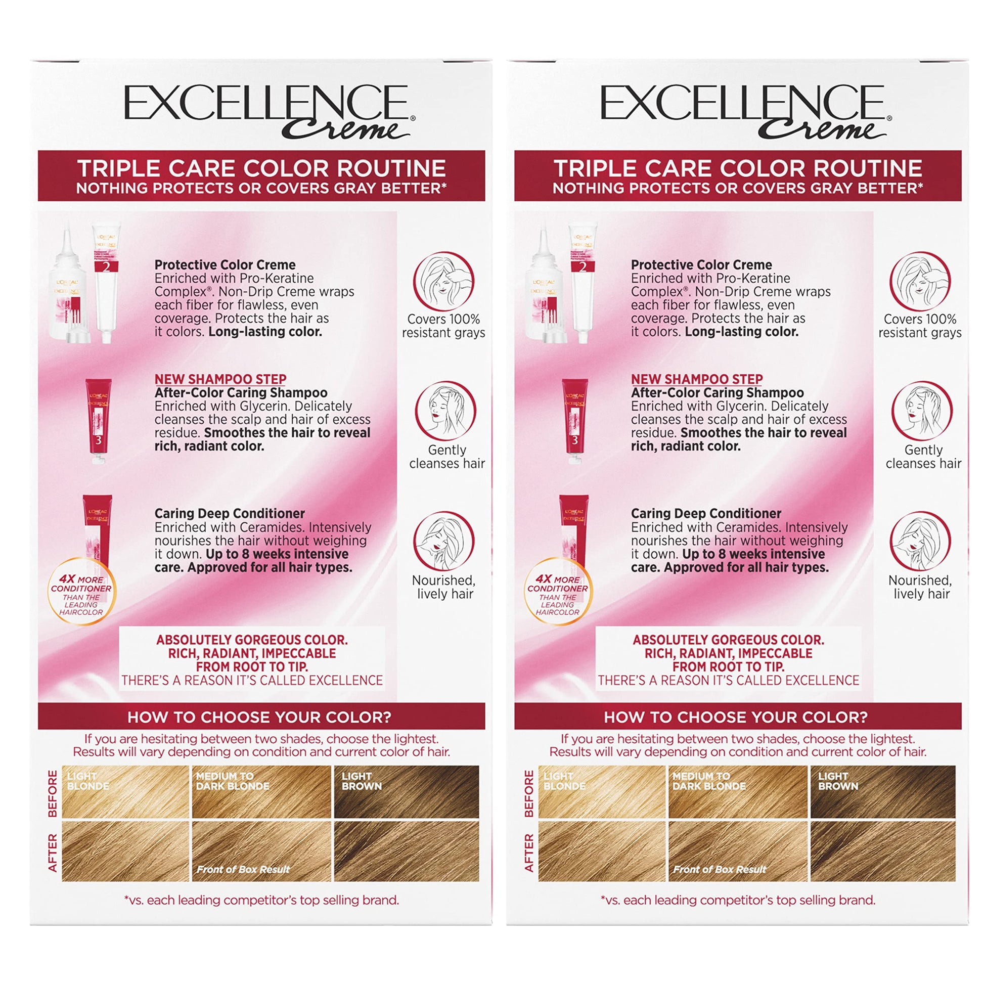 L'Oreal Paris Excellence Creme Permanent Hair Color, 8 Medium Blonde, 100 percent Gray Coverage Hair Dye, Pack of 2