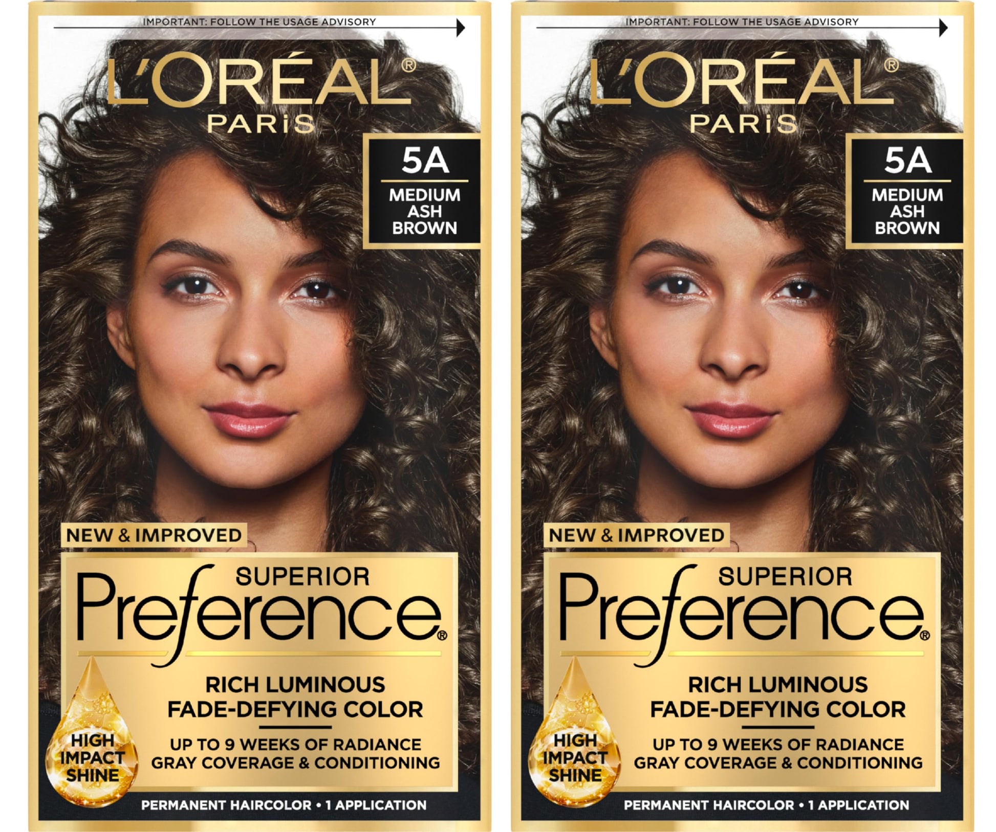 L'Oreal Paris Superior Preference Luminous Fade-Defying Permanent Hair Color, Hair Dye For Up to 9 Weeks of Radiance, Medium Ash Brown 5A, 1 Hair Dye Kit (Pack of 2)