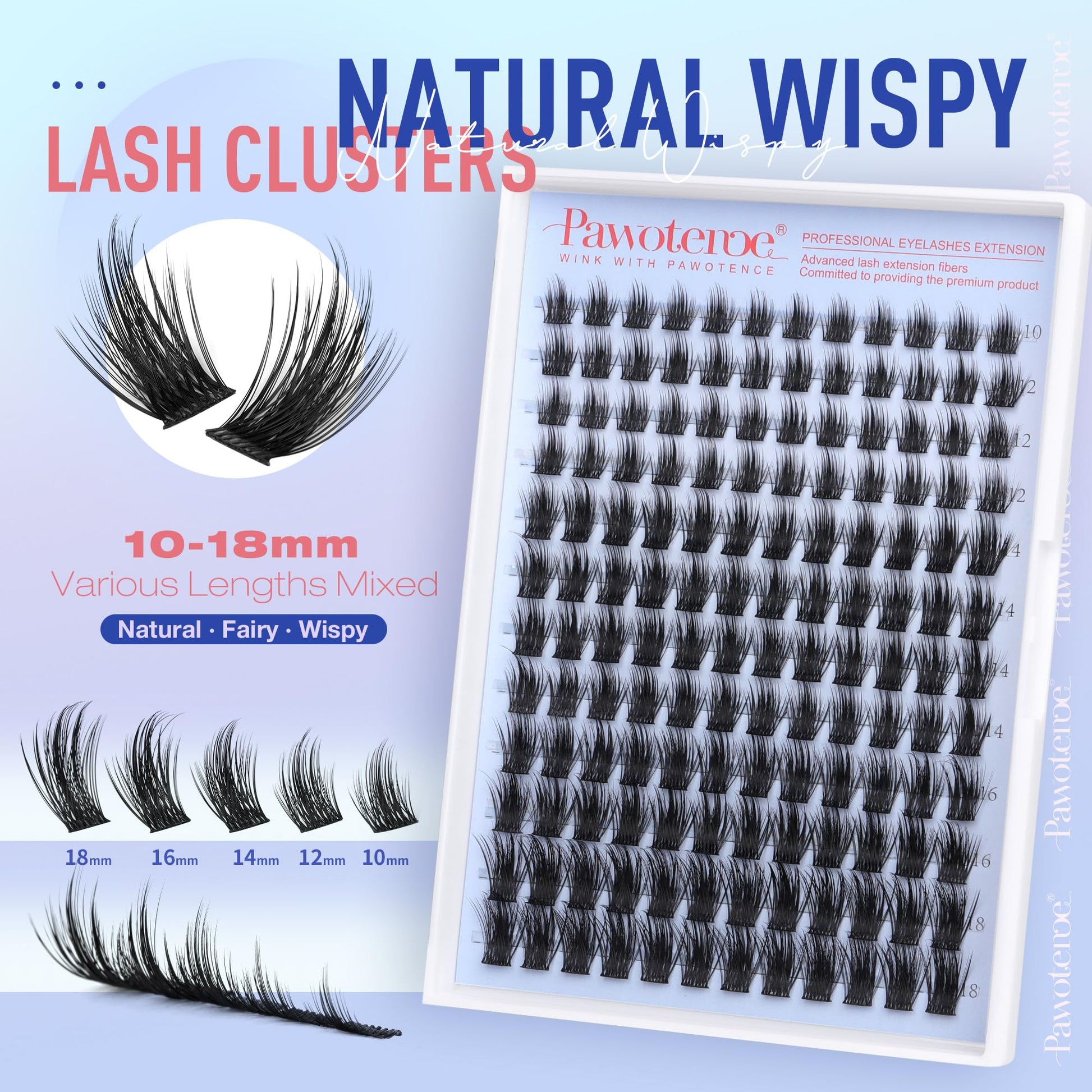 Pawotence Fairy Lash Clusters Manga Eyelash Clusters 10-18mm Wispy Lashes Cluster Eyelash Extensions 144pcs Anime Individual Cluster Lashes Wispy