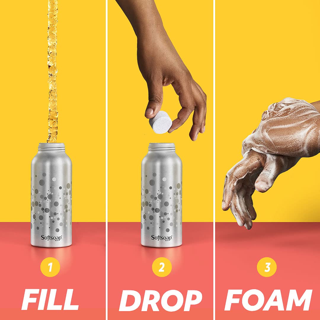 Softsoap Foaming Hand Soap Tablets Starter Kit with Aluminum Bottle Pump and 4 Refill Tablets, Lemon Fizz & Sparkling Lavender