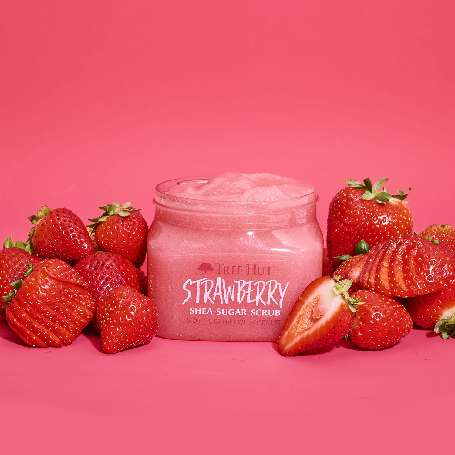 Tree Hut Strawberry Shea Sugar Scrub, Exfoliating, Hydrating & Moisturizing Body Scrub with Shea Butter & Nourishing Essential Oils, Smooth & Soften Skin, 18 oz